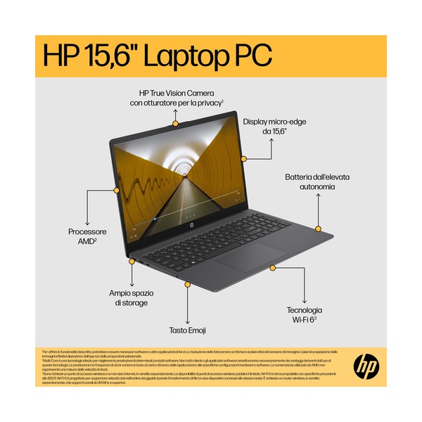 Un laptop potente e raffinato per portare a termine le tue attività, giorno dopo giornoIl PC laptop HP da 15,6" è ricco di funzionalità ed è la scelta perfetta per ogni budget, oltre ad essere più sostenibile per il pianeta. Costruito con materiali riciclati, questo potente laptop HP è dotato di processore AMD