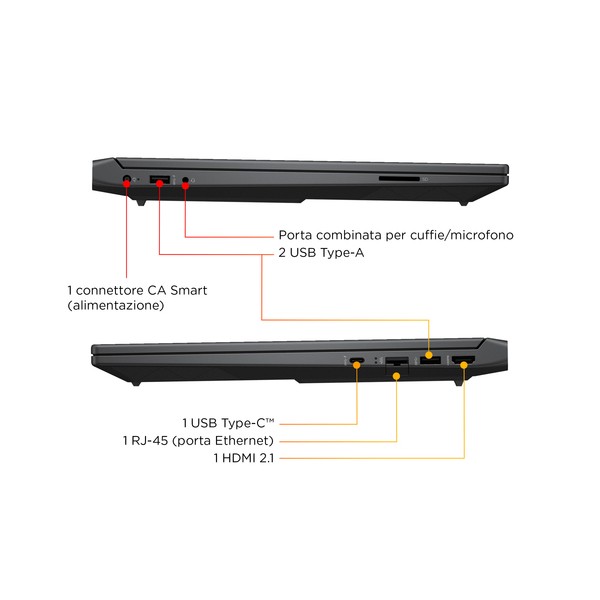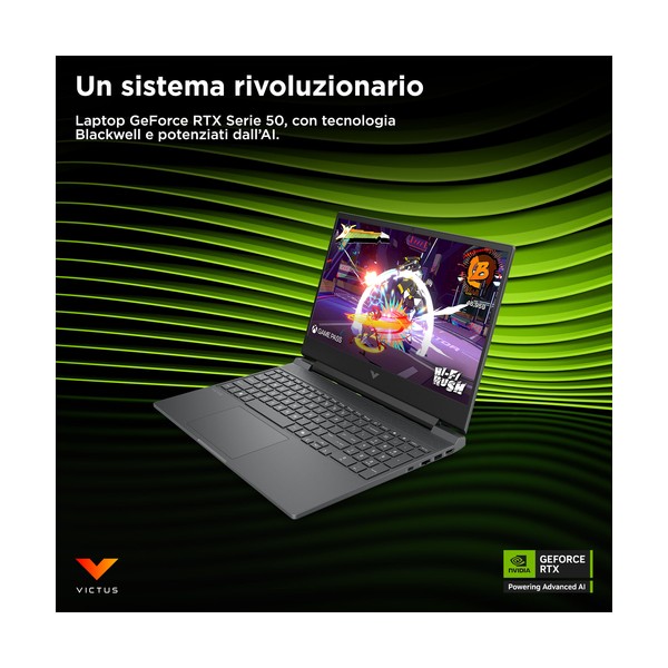 Realizza il tuo destino nel gaming HP Victus Laptop è un PC gaming pensato per offrire le massime prestazioni in movimento. Questo sistema elegante vanta un potente processore AMD[1] e una scheda grafica moderna. Il look di questo laptop colpisce quanto il suo hardware, grazie ai numerosi colori disponibili[2], al sistema di raffreddamento aggiornato e alla webcam con riduzione del rumore temporale.