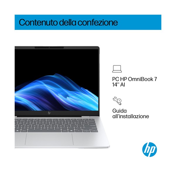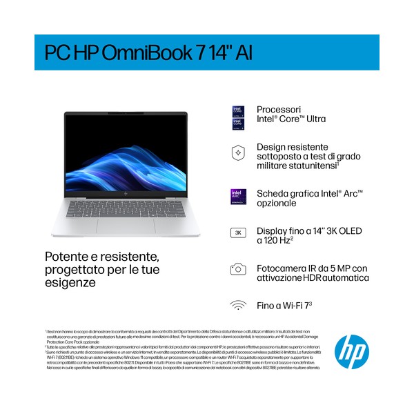 Un PC basato sull’AI, realizzato per durare nel tempo e per eccellere HP OmniBook 7 AI da 14" combina prestazioni elevate e multitasking fluido, grazie al processore Intel Core™ Ultra potenziato dall'AI[1]. Progettato per resistere alle sfide più difficili, è dotato di un display dai colori brillanti e di alta qualità, facile accesso all’AI con il tasto Copilot integrato[2] e videochiamate potenziate dall'AI per i professionisti in movimento.
