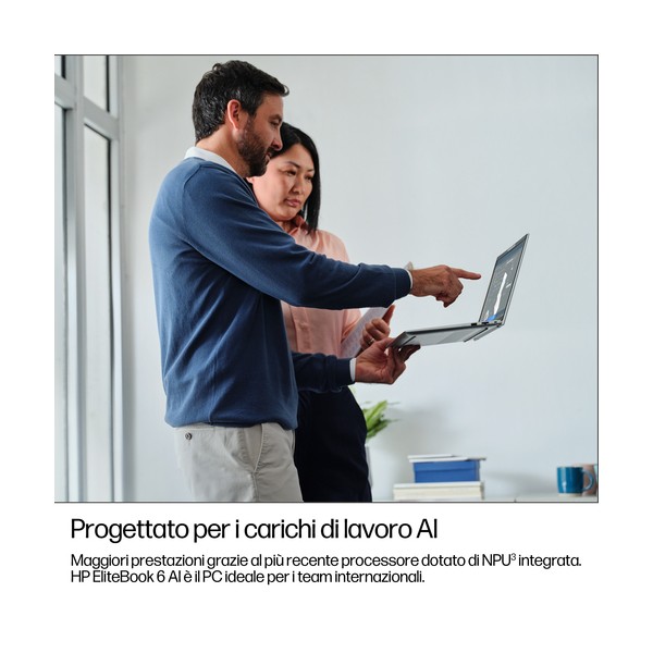 Le esperienze basate su AI e la tecnologia moderna di connettività migliorano la produttività degli utenti. Il PC HP EliteBook 6 G1i AI da 14'' offre una NPU da 11 TOPS[3], sicurezza e gestibilità di livello enterprise in un PC altamente configurabile che soddisfa le esigenze delle aziende.