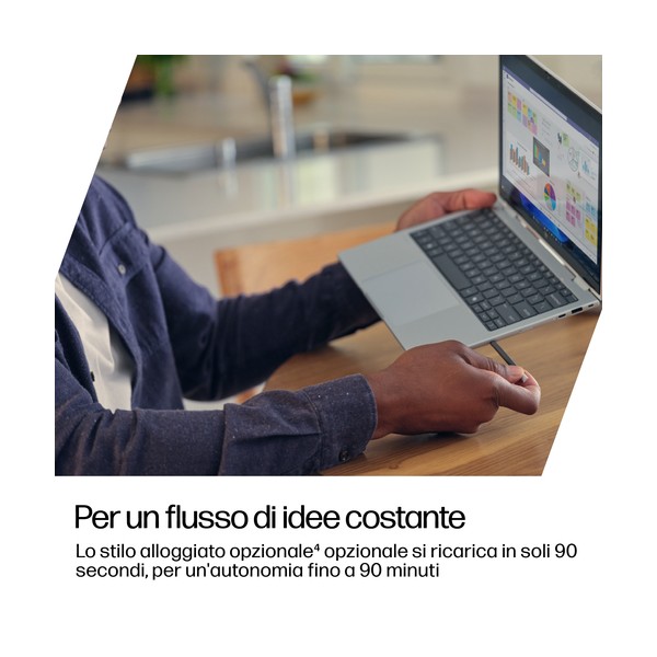 La flessibilità del design incontra le prestazioni dell'AI, per gestire con efficienza qualsiasi attività Potenziate i team ad alte prestazioni con un PC potenziato dall'AI che offre la potenza, la sicurezza e gli strumenti di collaborazione essenziali per il lavoro in ufficio o in contesti ibridi. Il notebook HP EliteBook 8 Flip G1i da 13'' basato su AI offre quattro modalità per lavorare, prendere appunti, condividere e visualizzare contenuti, per le esigenze di multitasking di chi lavora da remoto.