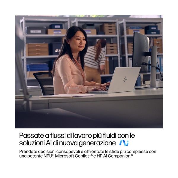 Integrate facilmente l'AI di nuova generazione nella vostra organizzazione Aumenta l'efficienza e scopri nuove possibilità con HP EliteBook 6 G1a, il PC basato sull'AI di nuova generazione. Le esperienze AI all'avanguardia[3] abbinate a configurazioni altamente sicure e di facile gestione rendono questo dispositivo ideale per una facile integrazione negli ambienti IT più esigenti.