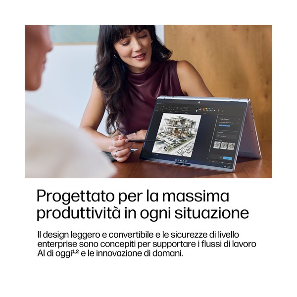 La potenza dell’AI. L’efficienza di un PC business. La flessibilità di un 2-in-1. Prendete appunti, abbozzate idee o presentate i vostri capolavori con il notebook HP EliteBook X Flip G2i 14'' basato sull'AI. Ideale per i professionisti in movimento, con un design leggero e convertibile, display touch e sicurezza di livello enterprise, per supportare i flussi di lavoro basati sull'AI[3] di oggi e le innovazioni di domani.