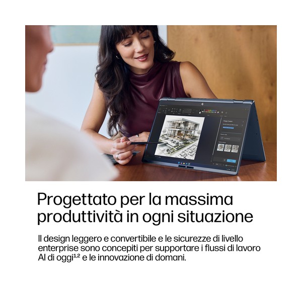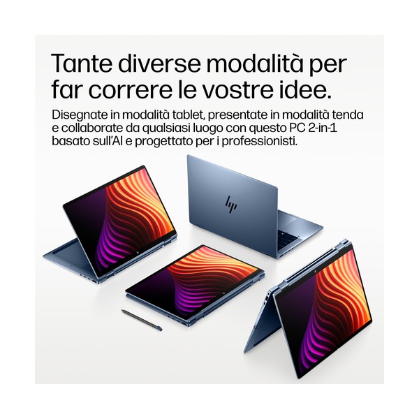 La potenza dell’AI. L’efficienza di un PC business. La flessibilità di un 2-in-1. Prendete appunti, abbozzate idee o presentate i vostri capolavori con il notebook HP EliteBook X Flip G2i 14'' basato sull'AI. Ideale per i professionisti in movimento, con un design leggero e convertibile, display touch e sicurezza di livello enterprise, per supportare i flussi di lavoro basati sull'AI[3] di oggi e le innovazioni di domani.
