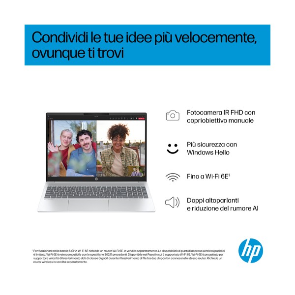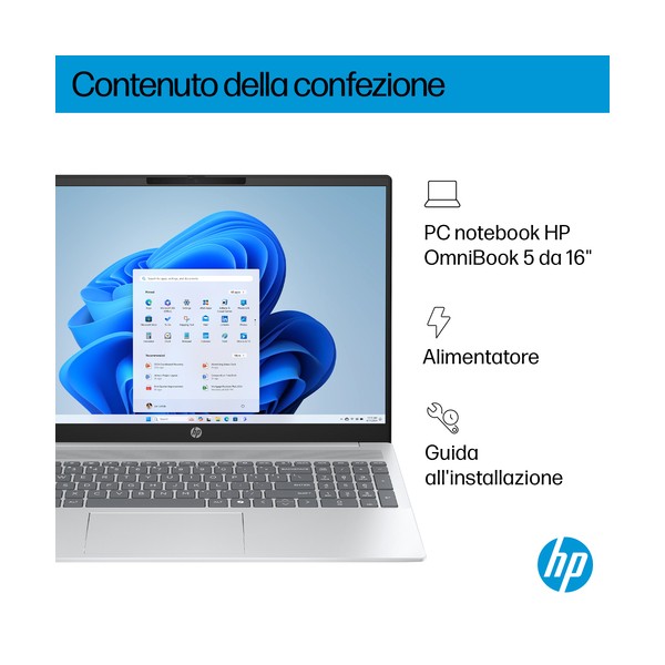 Crea contenuti, lavora in movimento e resta sempre connesso. Dai vita ai tuoi progetti anche in movimento con il notebook HP OmniBook 5 AI da 16". Vivi un'esperienza di multitasking continua con tutta la potenza dei processori Intel Core™ Ultra[1] e la ricarica rapida di HP Fast Charge[2]. Goditi un display straordinario, condividi idee con la fotocamera FHD[3] e rimani connesso con tutte le porte di cui hai bisogno.
