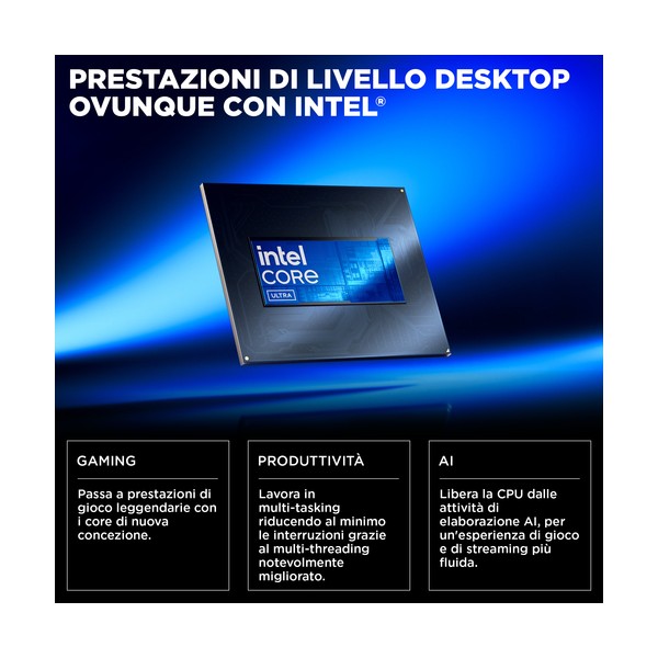 Intel Core™ Ultra 7 255HX (fino a 5,2 GHz con tecnologia Intel Turbo Boost, 30 MB di cache L3, 20 core, 20 thread)