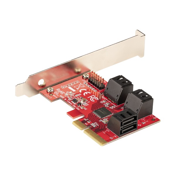 SATA III (6Gbps) | PCI Express 3.0 | PCIe x4 Slot | 6 Connettori SATA | 2 Anni di GaranziaQuesto controller a 6 porte SATA III (6Gbps) permette di aggiungere sei dischi rigidi (HDD) SATA 6Gbps o unità a stato solido (SSD) al Server del sistema informatico tramite un solo slot per scheda PCIe x4 disponibile. La scheda supporta le specifiche SATA III e PCI-Express 3.0.ASM1166 per fornire prestazioni a 6 porte SATA 6GbpsCon il controller ASM1166, questa scheda SATA permette la connessione di sei unità SATA 6Gbps ad alte prestazioni con una larghezza di banda totale combinata fino a 16Gbps. Le unità SATA sono collegate tramite sei porte SATA individuali situate sulla scheda (cavi SATA venduti separatamente).Ampia compatibilitàLa scheda è ampiamente supportata da tutte le piattaforme dei sistemi operativi più diffusi tra cui Windows (7, 8, 10, 11), macOS (10.10 e superiori) e Linux (2.6.32 e superiori). Supporta anche il moltiplicatore di porte, permettendo di collegare più unità a una singola porta SATA (è richiesto hardware aggiuntivo, venduto separatamente).Per migliorare ulteriormente la compatibilità con la scheda madre, la scheda non ha un controller RAID integrato, ma supporta perfettamente l'uso di un software RAID. Inoltre, con il supporto delle specifiche PCIe 3.0 e SATA III, questa scheda garantisce la compatibilità con le generazioni precedenti (SATA I/II, PCIe 1/2) a prestazioni ridotte.Installazione senza problemiIl controller SATA si installa in modalità plug-and-play nei Server a profilo alto oppure nei Desktop a profilo basso grazie alla ulteriore staffa in dotazione. Per una configurazione semplificata la scheda è compatibile con i sistemi di gestione dati dei software di archiviazione come Storage Spaces (Microsoft), RAID Assistant (MacOS) e mdraid/mdadm (Linux), software di partizionamento e costruzione di array RAID.6P6G-PCIE-SATA-CARD è coperto da garanzia StarTech.com di 2 anni e da supporto multilingue gratuito a vita 24/5 in Nord America.The StarTech.com Advantage