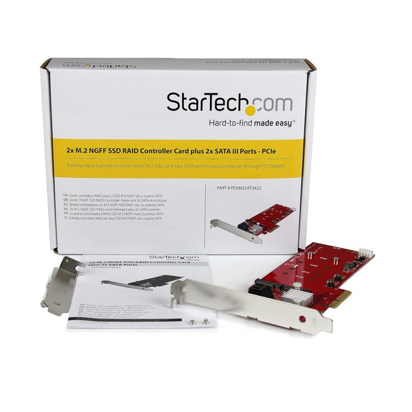 Questa scheda controller RAID SSD M.2 consente di installare due unità M.2 NGFF (Next Generation Form Factor) nel computer desktop. La scheda è dotata anche di due porte SATA III (6 Gbps) e supporta RAID hardware. Ora è possibile unire la velocità e le dimensioni compatte delle unità a stato solido (SSD) M.2 alla capacità di archiviazione degli hard disk (HDD) tradizionali.