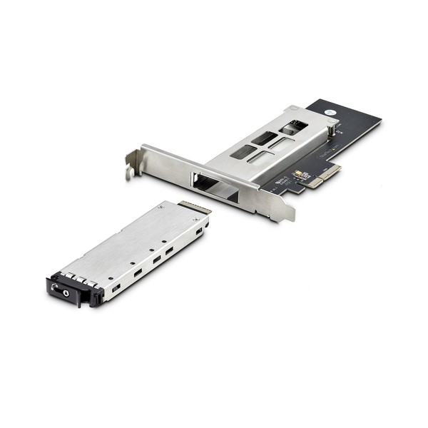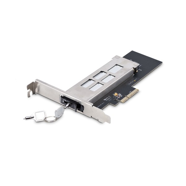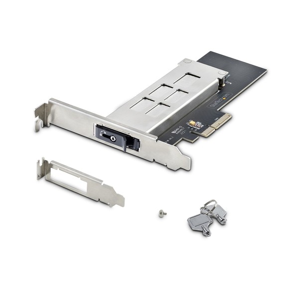 Si installa in uno slot di espansione PCIe x 4 (e superiore) per aggiungere un alloggiamento per unità M.2 NVMe rimovibile e bloccabile (drive non incluso)Utilizza uno slot di espansione PCIe 4.0 x4 disponibile per l'installazione; la rimozione o la sostituzione di SSD PCIe M.2. Il vassoio del drive può ospitare SSD M-Key M.2 NVMe nei formati 2230, 2242, 2260 e 2280.Installazione Senza AttrezziInstalla il drive M.2 nel vassoio e inserisci il vassoio nell'alloggiamento del drive, senza bisogno di attrezzi. Il vassoio del drive è dotato di un indicatore LED di alimentazione/attività per monitorare lo stato del drive. Un meccanismo di chiusura con serratura opzionale (2 chiavi incluse) impedisce il furto di dispositivi di archiviazione dati mission-critical.Performance OttimaliIl telaio in acciaio inox ventilato e il vassoio con cuscinetti termici favoriscono la dissipazione del calore, assicurando prestazioni ottimali e affidabili e riducendo il potenziale thermal throttling. Le molle antivibrazioni sul vassoio riducono l'impatto durante l'installazione e migliorano la stabilità generale e la longevità del dell'hard drive. È inclusa una staffa a basso profilo per i sistemi con fattore di forma ridotto.Hot-SwapI vassoi per unità supplementari (TR-M2-REMOVABLE-PCIE, prossimamente in vendita) offrono flessibilità e convenienza nella gestione di più unità M.2. Il supporto dell'hot swap NVMe PCIe dipende dalla scheda madre. Verifica il supporto hot swap con il produttore della scheda madre, e per le istruzioni su come abilitare questa funzione.The StarTech.com Advantage