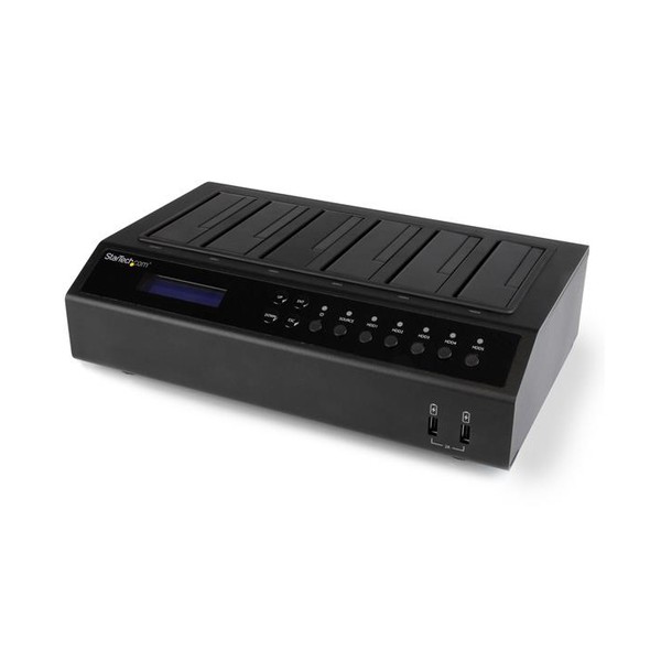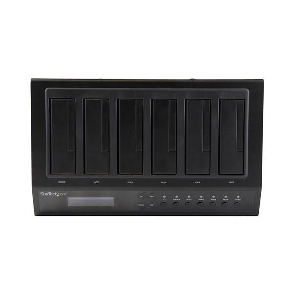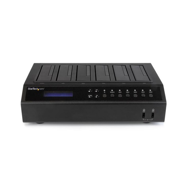 Il duplicatore/docking station per dischi rigidi SATDOCK5U3ER consente di clonare un disco rigido (HDD) o unità a stato solido (SSD) SATA da 2,5" o 3,5" in cinque unità SATA supplementari contemporaneamente funzionando come un dispositivo indipendente. Il duplicatore consente inoltre di cancellare fino a 5 unità, senza collegamento host.