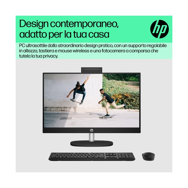 Progettato pensando al pianeta Questo PC Desktop HP All-in-One da 23,8'' e dal design sottile ti permette di fare di più con meno. Realizzato in modo responsabile con plastica riciclata post-consumo e plastica potenzialmente destinata agli oceani[1], accompagnato da registrazione EPEAT Gold e dotato di certificazione ENERGY STAR[2]. Con un processore potente, una memoria ampliata e migliori funzionalità di multitasking, non dovrai scendere ad alcun compromesso per prestazioni migliori.