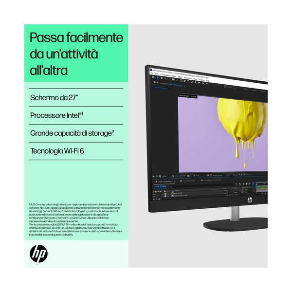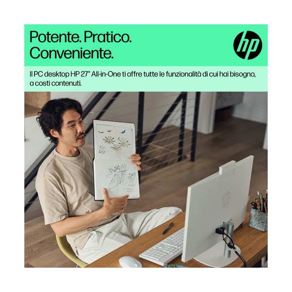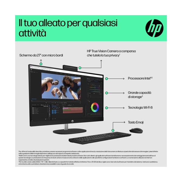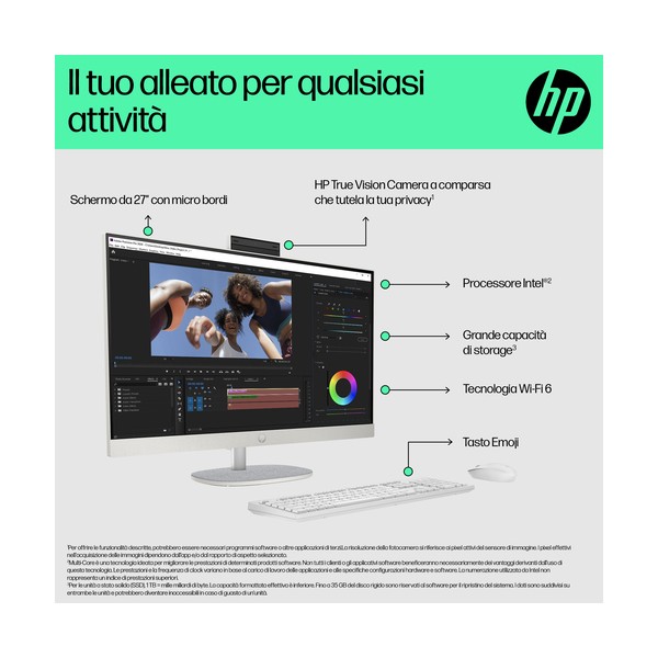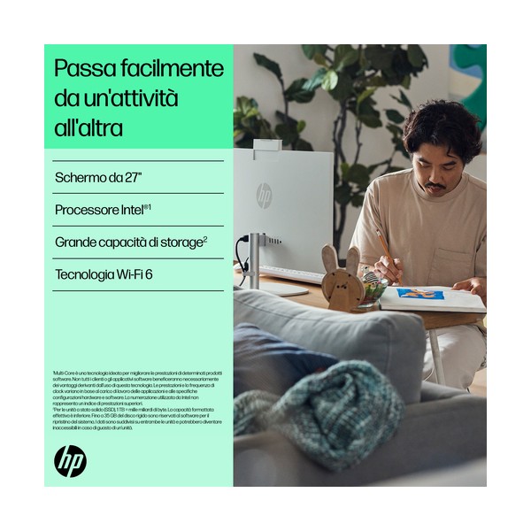 Progettato pensando al pianetaIl PC desktop HP 27" All-in-One ti consente di fare di più con meno. Realizzato in modo responsabile con plastica riciclata post-consumo e plastica potenzialmente destinata agli oceani