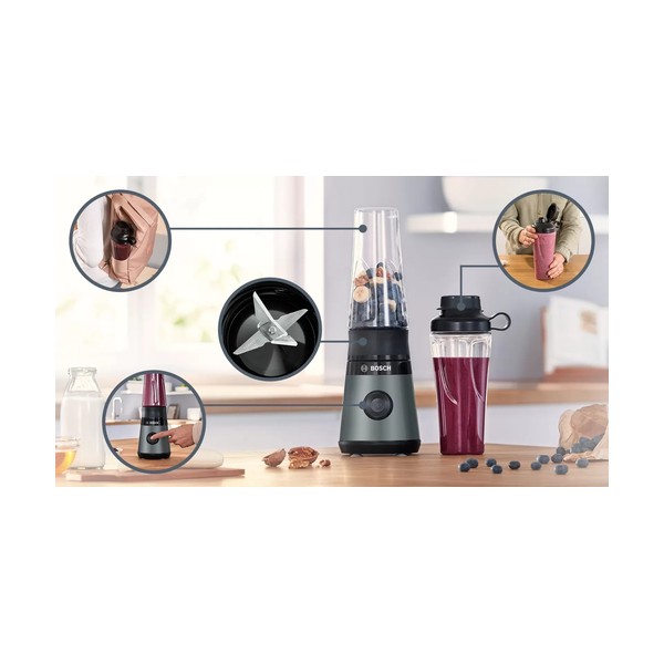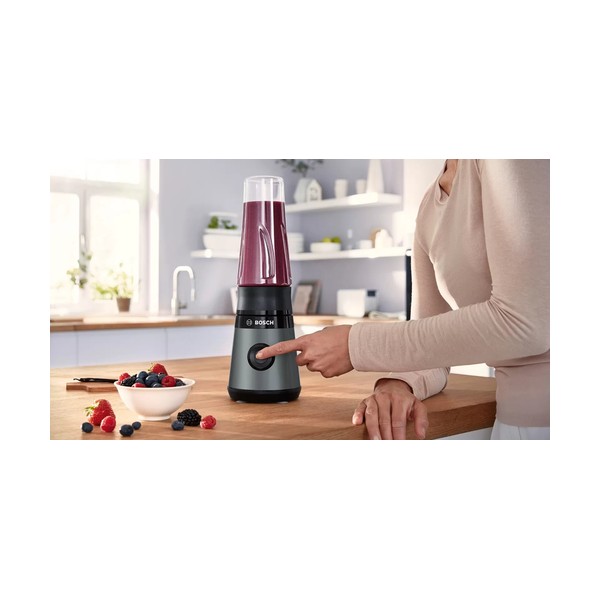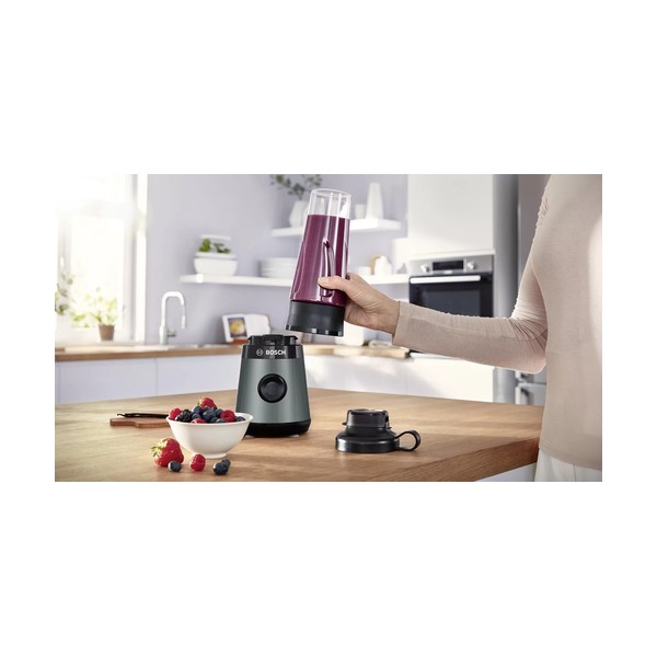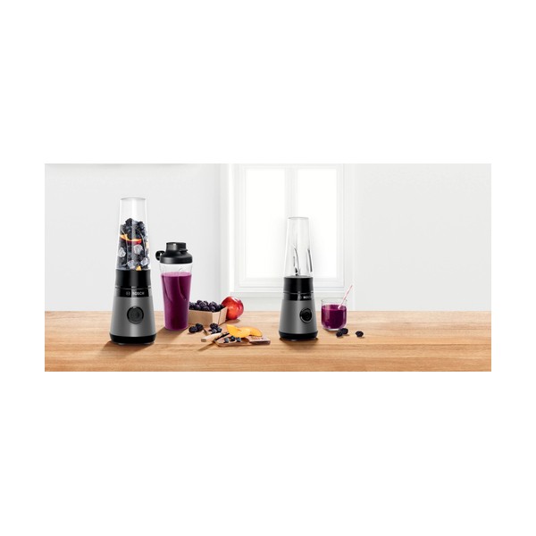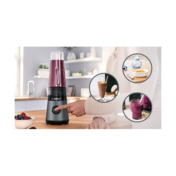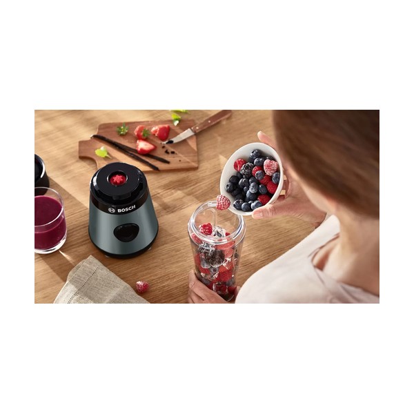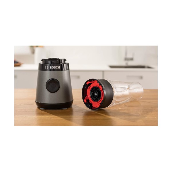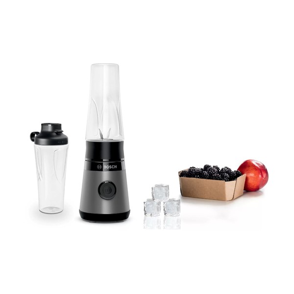 Bosch VitaPower MMB2111S. Capacità ciotola: 0,6 L, Velocità (massima) di rotazione: 40000 Giri/min, Tipo di controllo: Pulsanti. Tipo: Frullatore da tavolo, Colore del prodotto: Stainless steel. Materiale della scocca: Plastica, Materiale lama: Stainless steel. Potenza: 450 W, Alimentazione: AC, Tensione di ingresso AC: 220 - 240 V. Larghezza: 126 mm, Profondità: 122 mm, Altezza: 367 mm