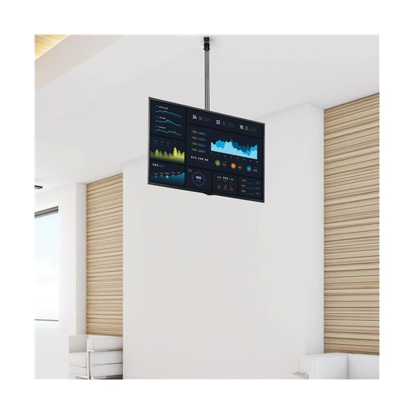 Grazie al supporto TV da soffitto è possibile collocare ben in vista un televisore al plasma, LED o LCD a schermo piatto in una posizione adatta per una visione confortevole, senza ingombrare pareti, scrivanie o pavimenti. È l'ideale per l'utilizzo nelle sale riunioni aziendali, nelle hall degli hotel, nei ristoranti, nei bar e in altri luoghi d'incontro. Il supporto TV da soffitto per carichi pesanti è compatibile con numerosi modelli di televisore, perché è in grado di sorreggere display con dimensioni comprese tra 32" e 75" e con un peso fino a 50 kg. I cavi rimangono nascosti perché si possono infilare all'interno dell'asta fuoriuscendo vicino alla sommità.