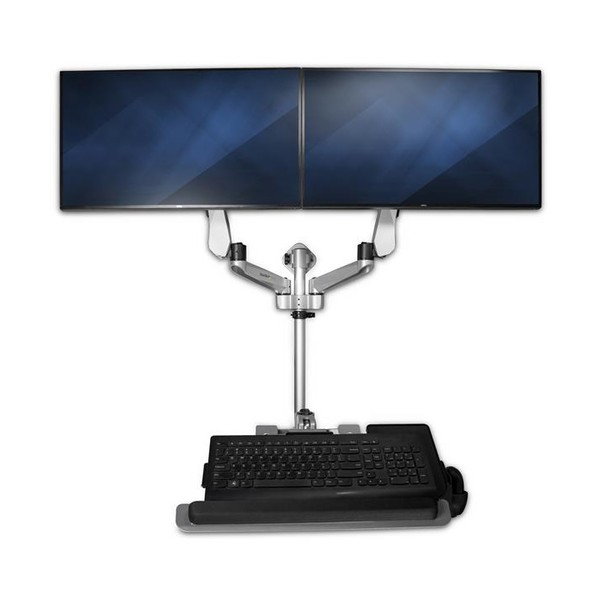 Maggiore produttività grazie a una workstation che si adatta al proprio modo di lavorare. Progettata per un'ampia gamma di movimenti, questa workstation per computer con montaggio a parete a doppio monitor è facilmente regolabile con staffe indipendenti per monitor e tastiera.
