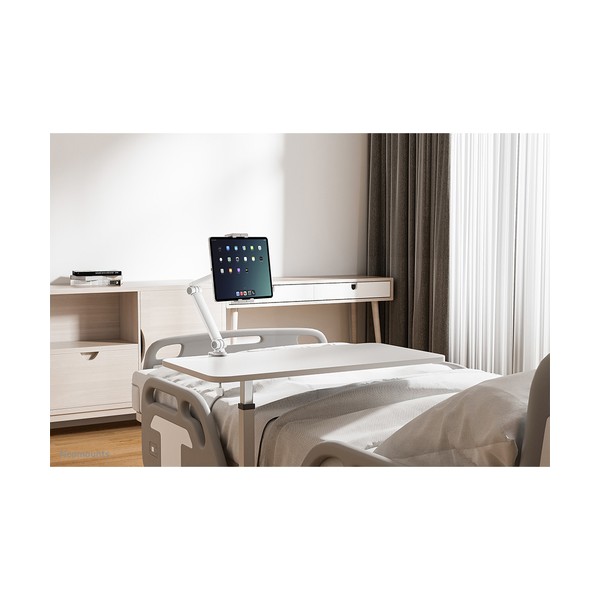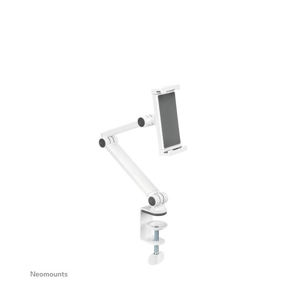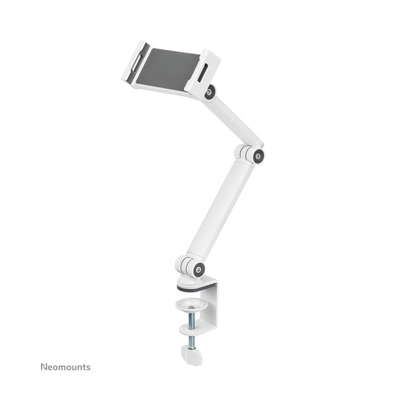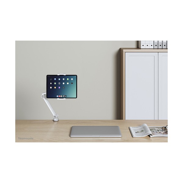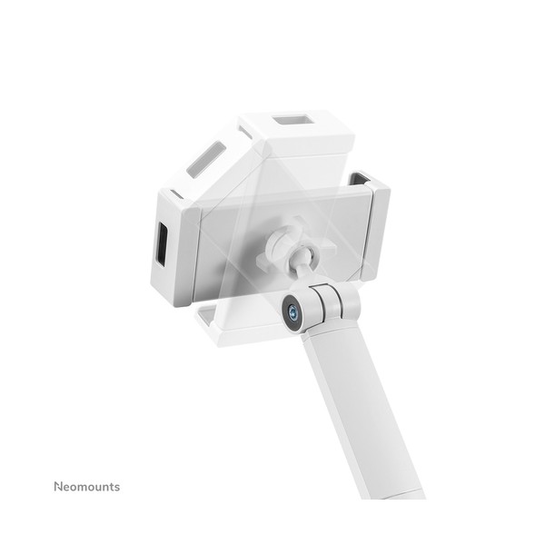 Neomounts DS15-545WH1 è un supporto universale per tablet da 4,7" a 12,9" con una capacità di peso di 1 kg. Il supporto per tablet è dotato di 3 punti di rotazione ed è ideale per videochiamate a mani libere, per guardare un film, per giocare o per utilizzare il tablet come secondo schermo.