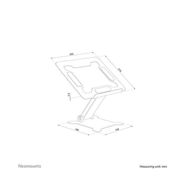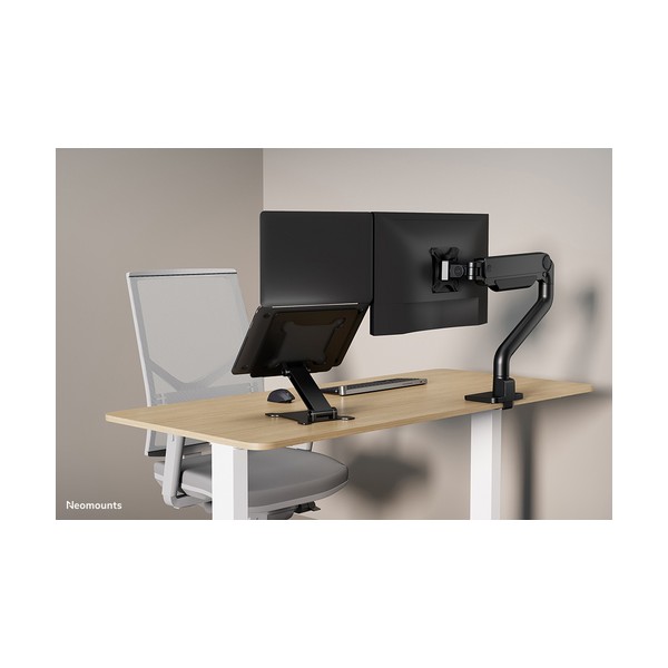 Neomounts DS20-740BL1 è un supporto universale per computer portatili fino a 15", con una capacità di peso massima di 5 kg. Il supporto è dotato di una regolazione in altezza continua, da 1,7 a 16,8 cm, per creare la posizione di lavoro ideale.