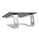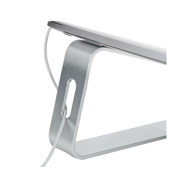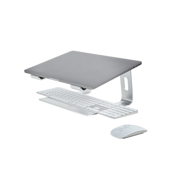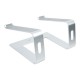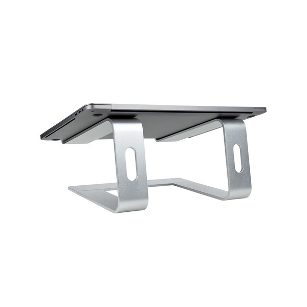 STAND NOTEBOOK: Rialzo per Laptop realizzato con 2 bracci di supporto angolati (16°) in alluminio, hanno la superficie piana con cuscinetti in gomma per evitare graffi ed un bordino sulla parte anteriore impedisce al Notebook di scivolare