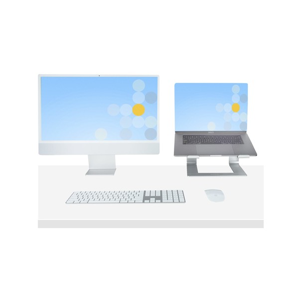 ALTA QUALITÀ: Il Supporto per Laptop da scrivania ha una finitura anodizzata colore argento e cuscinetti antiscivolo grigio che si abbinano ai MacBook e altri Laptop. Tutti i componenti hanno uno spessore di 5mm. Dimensioni dei bracci di supporto 210x50mm