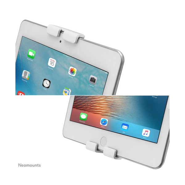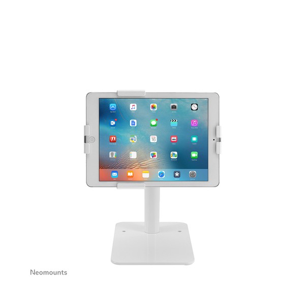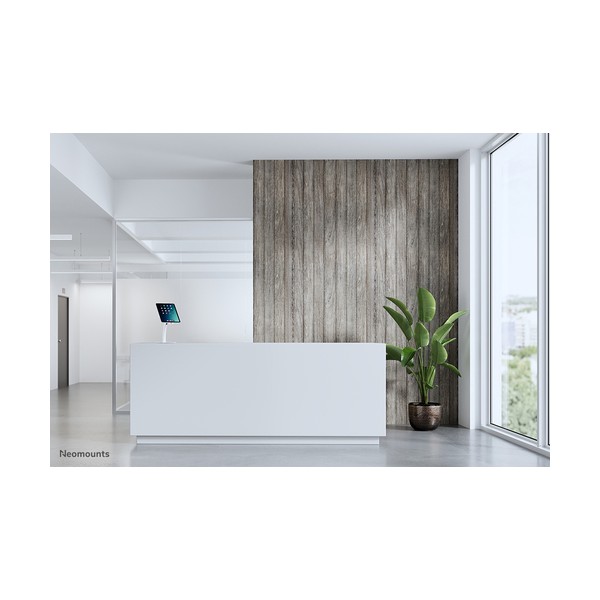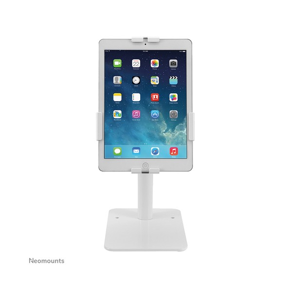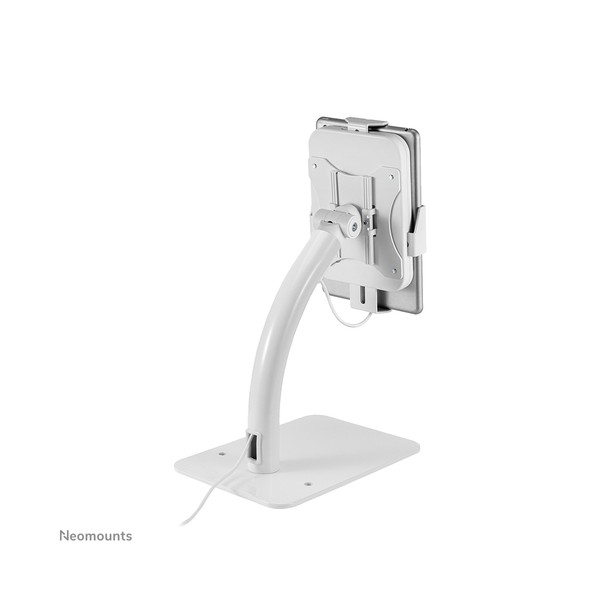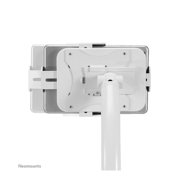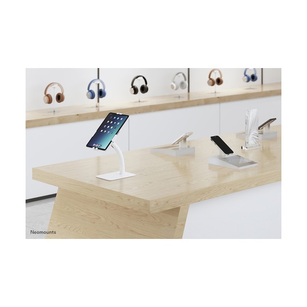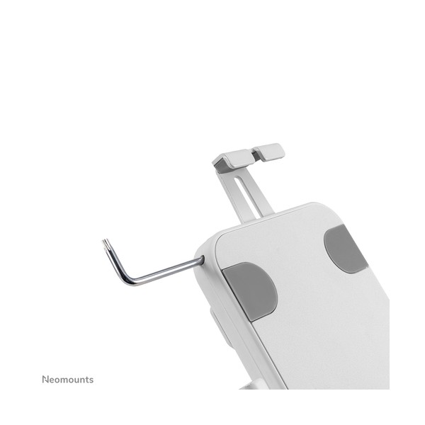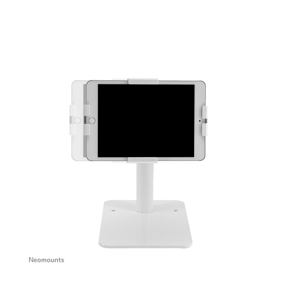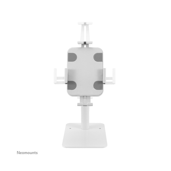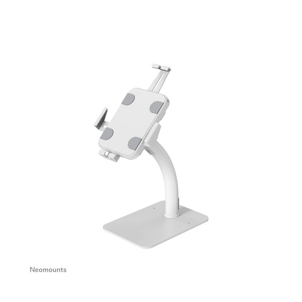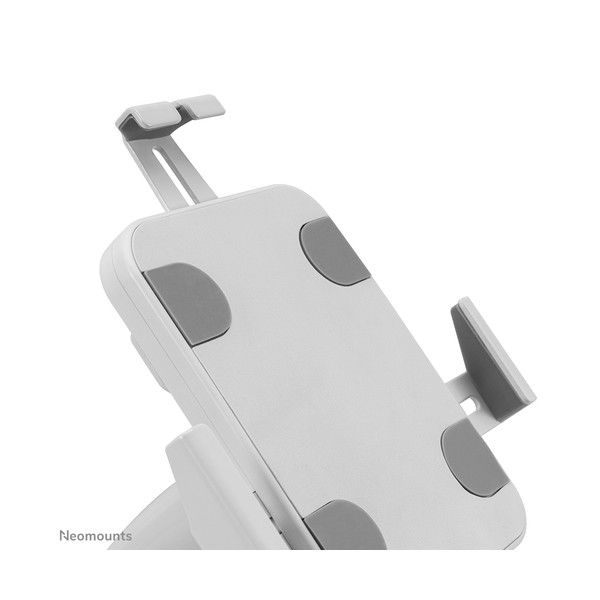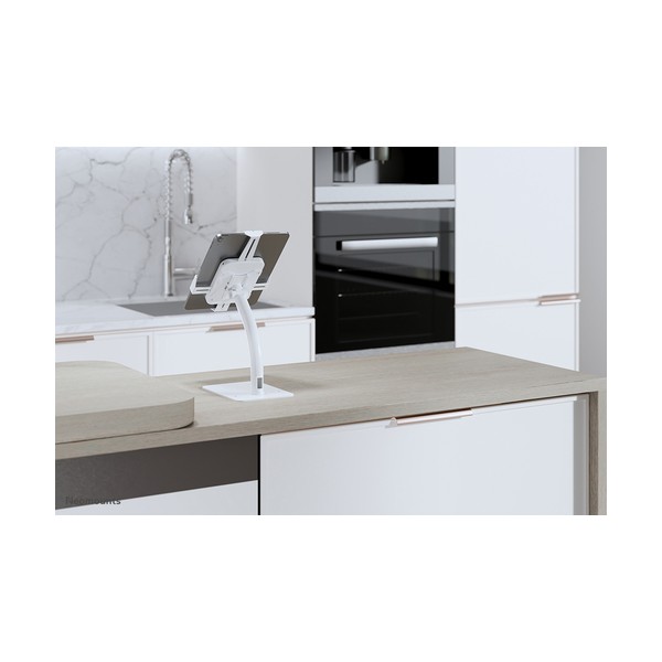 Neomounts DS15-625WH1 è un supporto per tablet da banco che può ruotare di 360° per passare facilmente dall'orientamento verticale a quello orizzontale. Inoltre, il supporto per tablet può essere inclinato di +20°/-110° per una visione confortevole. Grazie alla guida scorrevole sul retro, il tablet può essere perfettamente allineato al centro del supporto.
