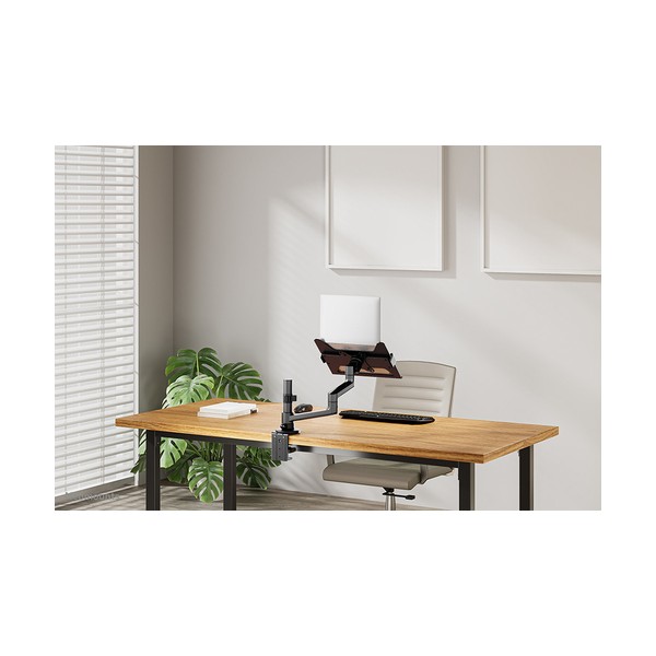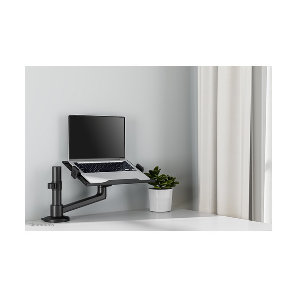 Neomounts DS20-425BL1 NEXT Lite è un supporto da scrivania full motion per laptop fino a 17,3" con una capacità massima di 5 kg. Grazie alla versatile tecnologia di inclinazione (120°), rotazione (360°) e rotazione (180°), il supporto da scrivania può essere regolato all'altezza e all'angolo di visione ottimali per il laptop. Inoltre, il supporto è dotato di regolazione manuale dell'altezza e della profondità per creare la posizione di lavoro perfetta.