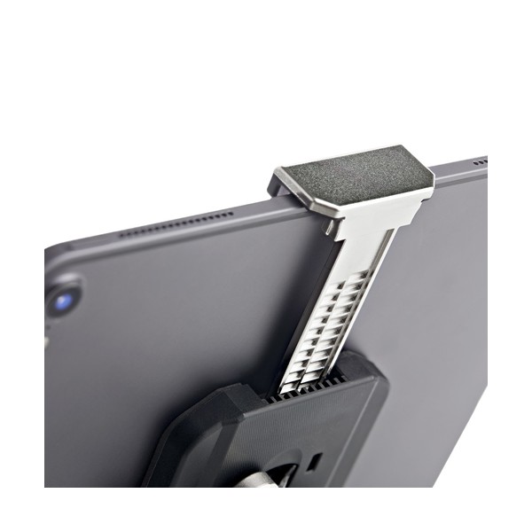 Supporto regolabile per tablet | Supporto per tablet fino a 13" | Blocco K-slot (1,8m)Questo supporto universale per tablet consente di installare e utilizzare un tablet come secondo display o come terminale POS e allo stesso tempo poter accedere a tutte le porte, i pulsanti e le fotocamere. È compatibile con i tablet di dimensioni comprese tra 7;9" e 13" con spessore fino a 7,6 mm e peso fino a 0,7 kg. Le staffe di presa estensibili e bloccabili mantengono il tablet in posizione per evitare che scivoli dal supporto mentre si interagisce o si digita su di esso.Raggio di movimentoÈ possibile inclinare (180°) e ruotare (360°) il tablet per regolarlo secondo l'angolo di visione ideale a seconda dell'applicazione; sia in modalità verticale che orizzontale. Il design a 2 punti di articolazione contribuisce a fornire lo stesso raggio di movimento per i tablet di piccole e grandi dimensioni.Protezione dei dispositiviIl sostegno per tablet consente di proteggere i dispositivi in vari modi, soprattutto nei casi in cui è necessario lasciare l'apparecchiatura incustodita. È dotato di 2 slot Kensington (K-slot) per l'ancoraggio singolo o a più testine di blocco utilizzando l' [%product ID="BRNCHLOCK" text="Anello di espansione per cavo di sicurezza per laptop (BRNCHLOCK) (non incluso). Per una maggiore sicurezza, è anche possibile avvitare il supporto iPad a una scrivania o a un piano di lavoro mediante le viti incluse.Design intelligenteIl prodotto SECTBLTDT è stato progettato pensando al dispositivo: nelle staffe di prese sono integrati un cuscinetto in schiuma e dei distanziatori affinché il dispositivo rimanga in posizione e sia protetto da graffi o usura. È inoltre dotato di piedini in gomma per proteggere la scrivania o la superficie di montaggio.I cavi possono essere instradati sul retro grazie alle aperture per la gestione cavi, mantenendo una configurazione ordinata e organizzata.Il prodotto SECTBLTDT è coperto da una garanzia StarTech.com di 2 anni e dal supporto tecnico gratuito a vita.The StarTech.com Advantage