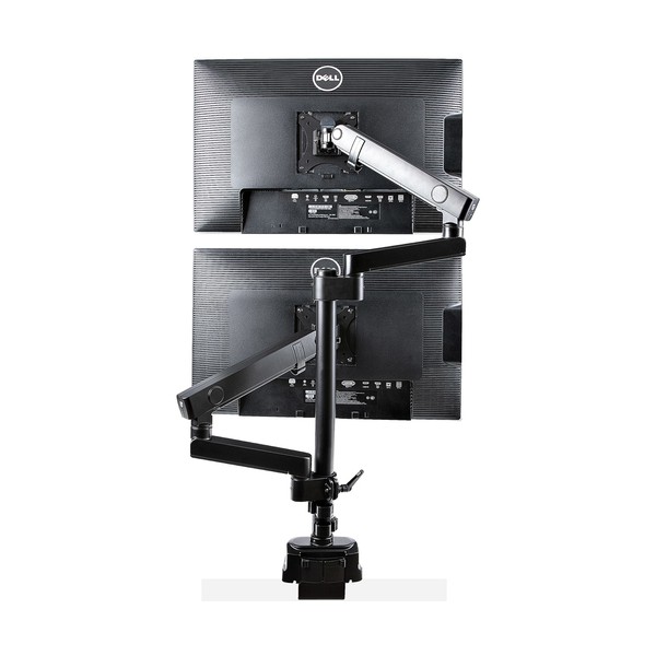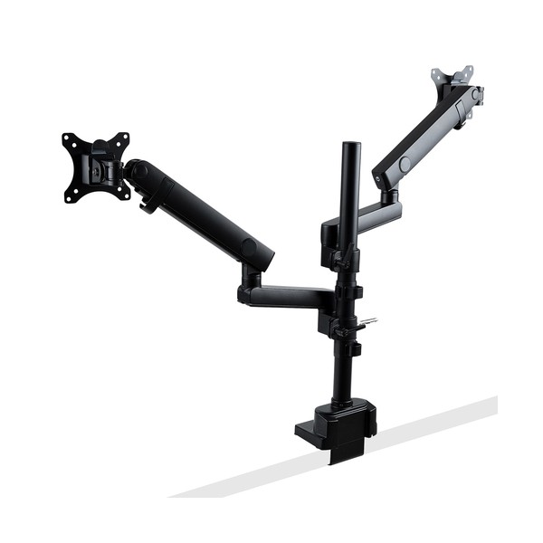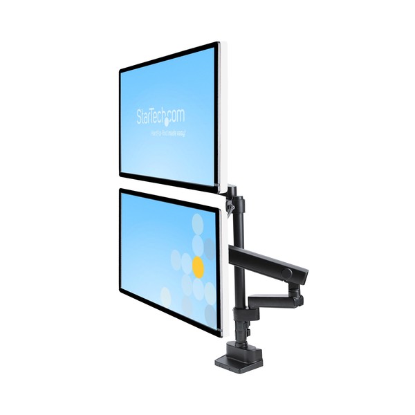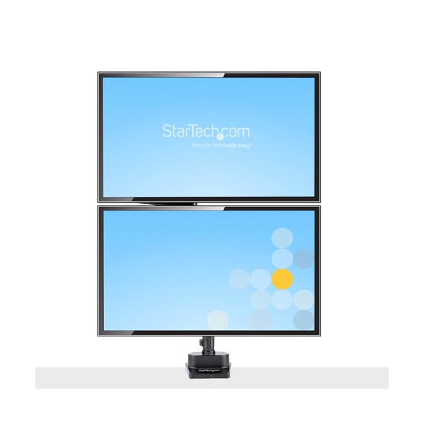 AUMENTA LA PRODUTTIVITÀ: Con 2 bracci indipendenti su un'asta più lunga, questo supporto multi monitor permette di ottimizzare lo spazio sovrapponendo due schermi LCD da 32" (16:9)/(32:9); Ideale per piccoli spazi di lavoro in casa/ufficio/cubicolo
