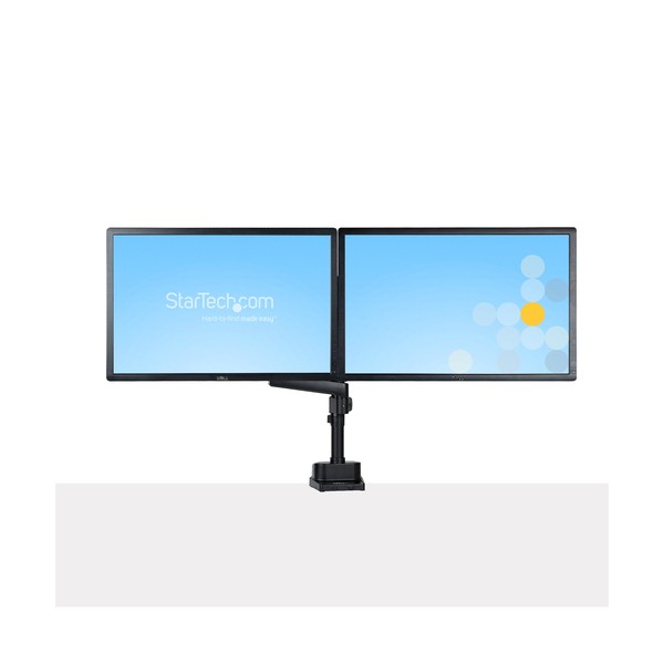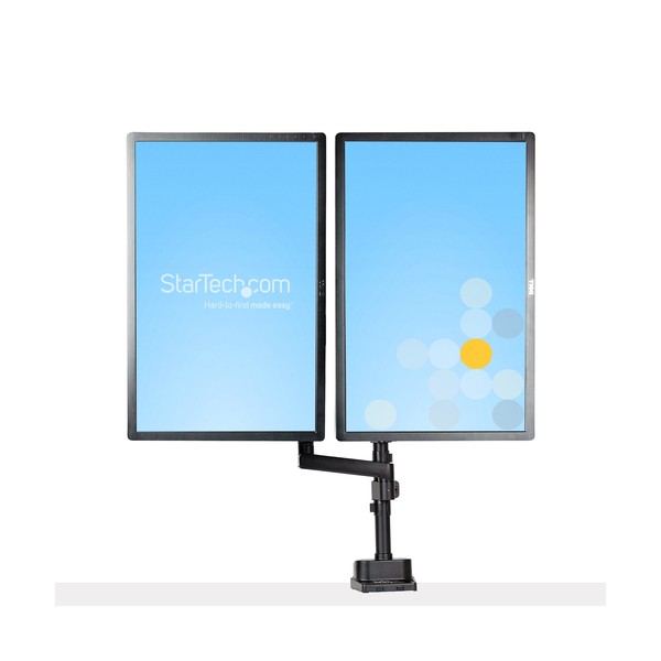 Supporto per Monitor | Movimento Completo | Regolabile in altezza | Supporto TubolareQuesto supporto per doppio monitor permette di montare due monitor fino a 32". I bracci, fissati e impilati all'asta separatamente, sono facilmente regolabili per il posizionamento orizzontale o verticale del monitor. La solida struttura in acciaio di questo braccio per 2 monitor consente di sostenere schermi da 8kg ciascuno con due opzioni di montaggio incluse (morsetto a C o vite passante compresa di contropiastra) per fissare saldamente i monitor alla scrivania.Braccio Snodabile a Movimento CompletoImposta un ambiente di lavoro ergonomico e recupera spazio prezioso sulla tua scrivania. Il supporto regolabile per monitor permette di estendere il braccio di ben 59,4cm dal palo e un'altezza massima di 76,2cm con i monitor adiacenti. Il braccio a movimento completo si muove liberamente intorno all'asta per fornire un'ampia gamma di movimenti su più assi. È possibile inclinare, ruotare e orientare il monitor di +/-90 gradi, per ottenere un angolo di visione ottimale. Passa dall'orientamento orizzontale a quello verticale in qualsiasi momento. L'altezza del braccio può essere alzata o abbassata facilmente senza l'uso di attrezzi, regolandolo con le mani per un posizionamento fluido e senza sforzo. I bracci del monitor hanno una regolazione in altezza di 25,4 cm, é possibile regolare i bracci sulla parte fissata al supporto principale.Installazione SempliceLe piastre VESA amovibili con clip a sgancio rapido consentono di montare i monitor al supporto con estrema facilità. Potete fissare il supporto al bordo della vostra scrivania o del vostro tavolo con il morsetto a C oppure montarlo attraverso il foro passante iano della scrivania, il cui spessore non deve superare i 5 cm.Postazione di lavoro ben organizzataQuesto doppio braccio per monitor da scrivania ti consente di liberare spazio alzando i tuoi monitor dalla scrivania o dal tavolo. Per la gestione dei cavi, è fornito di clip ed un canale lungo ogni braccio per instradare i cavi e mantenere un aspetto organizzato e professionale sulla tua postazione di lavoro.ARMDUALPIVOT è coperto dalla garanzia di 5 anni di StarTech.com e dal supporto tecnico gratuito a vitaThe StarTech.com Advantage