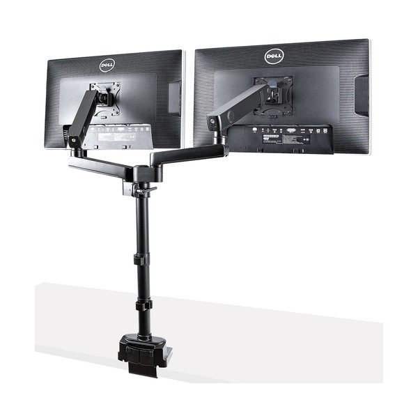 REGOLAZIONE ONE-TOUCH: Braccio per 2 monitor a movimento completo con altezza regolabile +/- 25cm; Fissa ogni braccio lungo l'asta da 48 cm (con monitor sovrapposti verticalmente); Altezza massima di 76cm (se adiacenti); Estensione bracci 59,4cm
