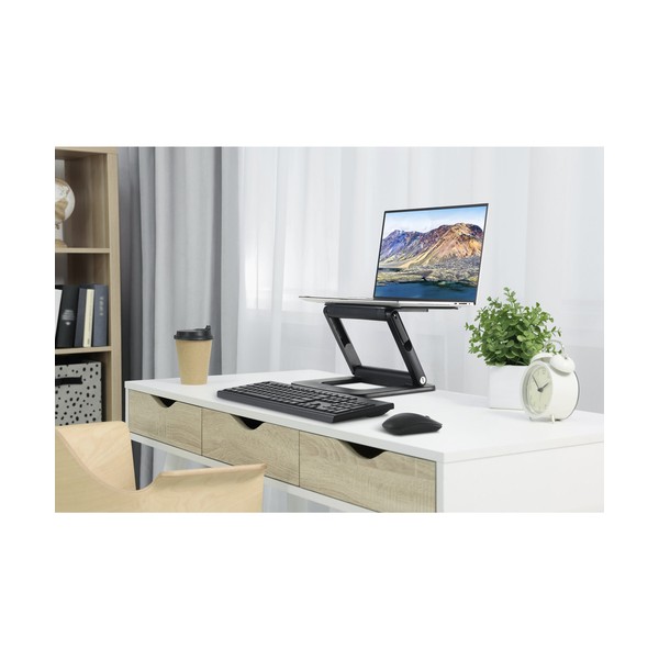 - Supporta una visuale corretta ed ergonomica all’altezza degli occhi, oltre a migliorare l’allineamento di collo e spalle