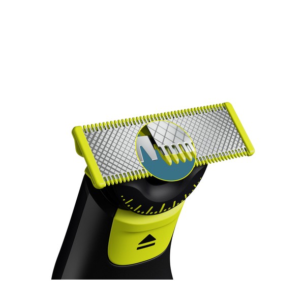 Lama a doppia direzione di taglio: progettata per garantire precisione e controllo Le lame di OneBlade seguono i contorni del viso, consentendoti di rifinire e radere in modo confortevole e facilmente qualunque zona. Usa la lama a doppia direzione di taglio per rifinire i contorni del tuo viso secondo lo stile che preferisci e creare linee definite muovendo la lama in qualsiasi direzione.