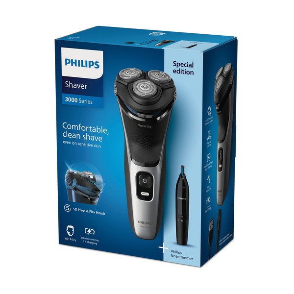 Il rasoio elettrico Wet & Dry Philips Shaver serie 3000 offre una rasatura precisa e confortevole, anche sulle pelli sensibili. Le testine Pivot & Flex 5D, 27 lame PowerCut autoaffilanti e l'utilizzo su pelle bagnata e asciutta garantiscono sempre risultati eccellenti e affidabili.