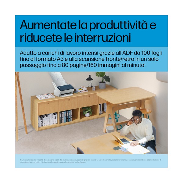 Massima produttività. Grande formato. Prestazioni avanzate. Lo scanner HP ScanJet Enterprise Flow 9000 s1 è ideale per la scansione di documenti di grande formato e per la gestione semplificata di carichi di lavoro intensi.