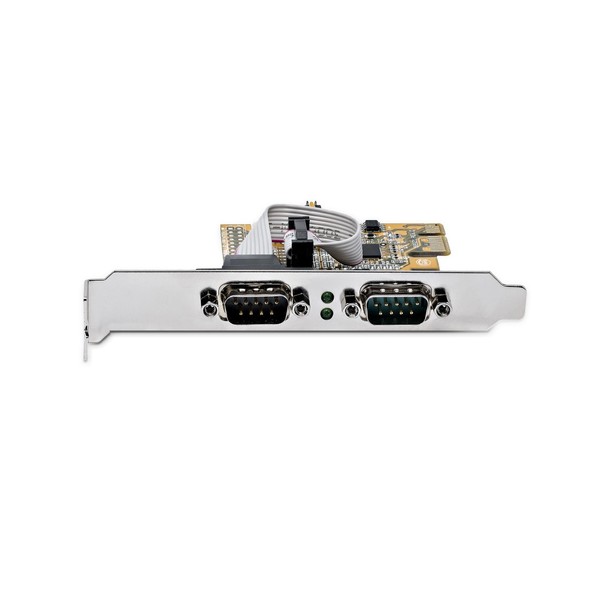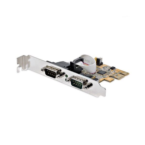 DA PCIE A SERIALE: Collega dispositivi seriali RS232 (DB9) a un computer con questa scheda seriale per PC a basso profilo - Supporta l'UART 16C1050 ad alte prestazioni su entrambe le porte DB9 maschio - Controlla l'attività con le luci di stato LED integrate sulla scheda