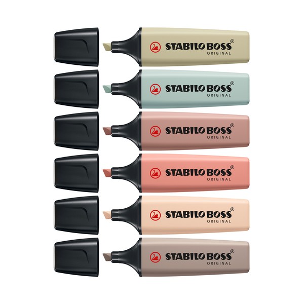STABILO BOSS NatureColors evidenziatore 6 pz Punta smussata Nero, Bronzo, Marrone, Verde, Grigio, Verde chiaro