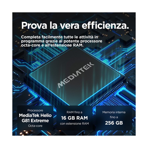 Performance straordinariamente efficienti con Estensione RAM. Esegui con facilità più attività contemporaneamente e ottieni fino a 12 GB di con Estensione RAM5, senza compromettere la durata della batteria