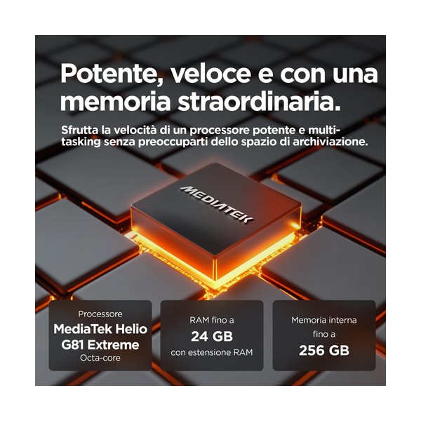 Performance rapide con Estensione RAM4. Lasciati sorprendere dalla velocità fulminea di un processore octa-core e dal multitasking avanzato