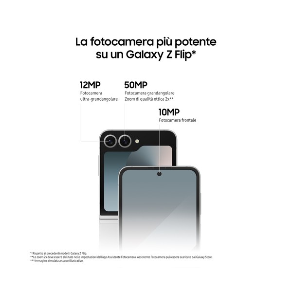 Scopri Galaxy Z Flip6, lo smartphone Galaxy pieghevole compatto dotato di fotocamera da 50 MP e batteria a lunga durata, potenziato dalle innovative funzionalità di Galaxy AI.