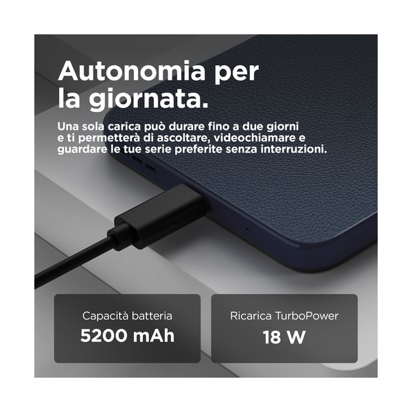 Batteria con autonomia di 2 giorni1 + ricarica TurboPower™11. Prolunga la durata della batteria da 5200 mAh grazie a un design a elevata densità di alta qualità