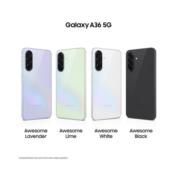 Il Galaxy A36 5G è un mix di minimalismo e resistenza che non passa inosservato. Si caratterizza per la disposizione dalle linee pulite delle fotocamere e per il vetro posteriore di alta qualità. La cornice più sottile e la scocca laterale piatta trasmettono una sensazione di slanciata eleganza.