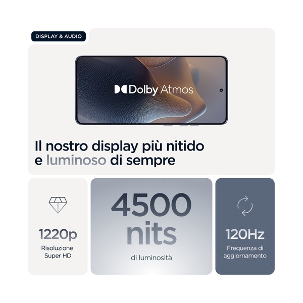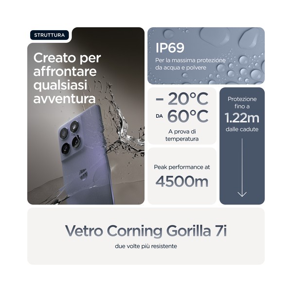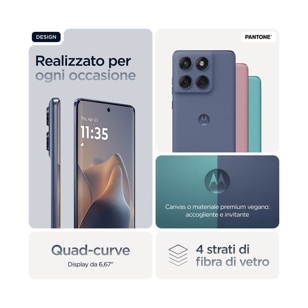 Abbiamo aggiunto gli elementi essenziali di cui hai bisogno, progettandoli con la qualità di livello premium che desideri. Ti presentiamo Motorola Edge 60 Fusion. Il design quad-curve realizzato con precisione è stupendo da ogni angolazione. Scatta foto straordinarie ovunque con il sistema di fotocamere Sony LYTIA™ da 50 MP. Proteggi lo smartphone da cadute,(1, 2) temperature estreme(2) e acqua,(3) mantenendo un tocco di eleganza sofisticata. E lasciati incantare dallo schermo Super HD (1220p) da 6,67", il più luminoso di sempre. Ottieni una batteria con autonomia per l'intera giornata e ricarica TurboPower™ da 68 W in soli 8 minuti.(4) Insegui le tue passioni senza disturbi grazie alle prestazioni ultraveloci. Fai spiccare ogni dettaglio essenziale con Motorola Edge 60 Fusion.