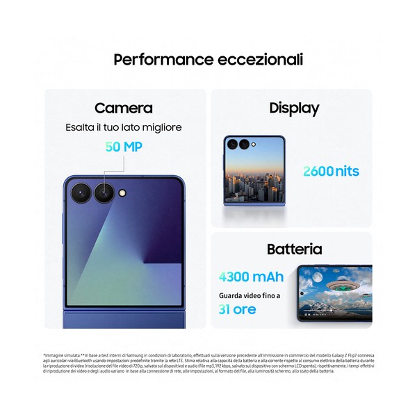 Samsung Galaxy Z Flip7 Smartphone AI, RAM 12GB, 256GB, Display 4,1" Super AMOLED/6,9" Dynamic AMOLED 2X, Fotocamera 50MP, Blue S