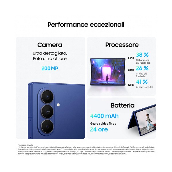 Espandi il tuo gameplay sul display più grande del Fold e con il più avanzato processore mobile Snapdragon®. Questo processore di nuova generazione, che include miglioramenti della CPU, della GPU e della NPU, permette un'impressionante capacità di gioco e di intelligenza artificiale, migliorando notevolmente l'esperienza complessiva del Galaxy. Immergiti con il supporto ottimizzato Vulkan, e scopri come il ray tracing in tempo reale dà vita a ogni scena. Inoltre, l'ingegneria pionierista del nostro mobile Digital Natural Image engine (mDNIe) garantisce unelevata qualità di visualizzazione senza prosciugare la batteria.