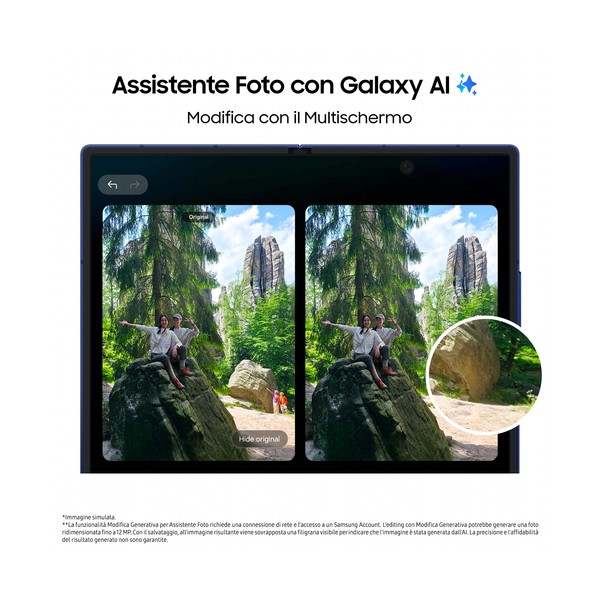 Cattura scatti ad alta risoluzione con la nostra potente fotocamera da 200 MP perfettamente abbinata al ProVisual Engine. Recente aggiunta alla serie Galaxy Z Fold, la nostra ultra fotocamera da 200 MP incontra finalmente Galaxy Z Fold7. Cogli i particolari più fini di ogni scena e lascia che il nostro ProVisual Engine di nuova generazione faccia il resto. Migliora il colore e i dettagli per una chiarezza che esalta i toni della pelle e le texture. Poi, utilizza il display di grandi dimensioni per visualizzare le tue foto per un'incredibile immersione nella realtà.