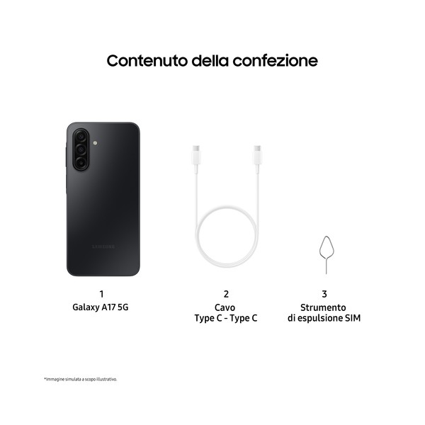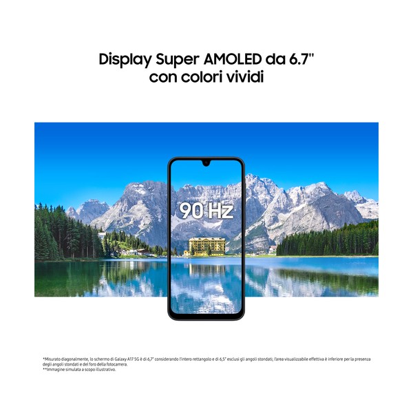 Samsung Galaxy A17 5G, Android 15, Display sAMOLED 6.7", 8GB RAM, 256GB, Batteria 5.000 mAh, Resistenza IP54, Memoria espandibil