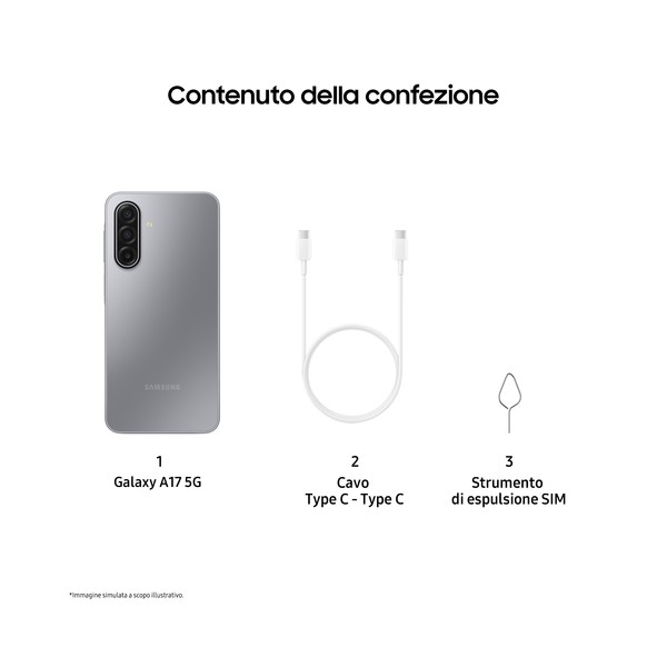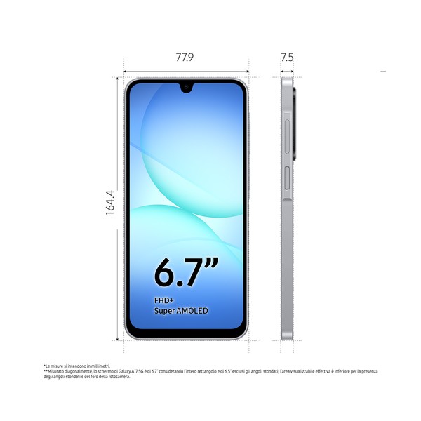 Samsung Galaxy A17 5G, Android 15, Display sAMOLED 6.7", 8GB RAM, 256GB, Batteria 5.000 mAh, Resistenza IP54, Memoria espandibil