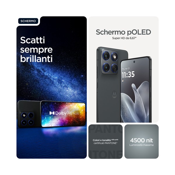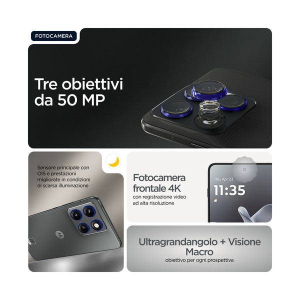 Immagine fedele da ogni obiettivo. I tre obiettivi da 50 MP, la potenza di Moto AI e i colori e le tonalità Pantone™ ti permettono di ottenere risultati straordinari in ogni scatto.1