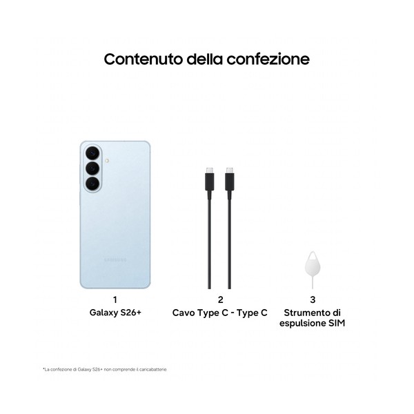Samsung Galaxy S26+ Smartphone AI, 256GB, Processore avanzato, Assistente Foto, Creative Studio, Camera 50 MP, 4900 mAh, Sky Blu
