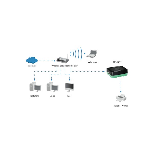 LevelOne FPS-1032 server di stampa LAN Ethernet Nero, Verde