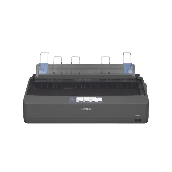 Epson LX-1350. Massima velocità di stampa: 357 cps, Risoluzione massima: 240 x 144 DPI, Massima velocità di stampa (draft): 312 cps. Dimensioni massime di stampa: A3 (297 x 420 mm), Tipi di supporti per vassoio della carta: Buste, Etichette, Rotolo, Range di spessore del modulo continuo: 0,065 - 0,39 mm. Colore del prodotto: Nero, Grigio, Dimensioni buffer: 128 KB, Livello di pressione acustica (stampa): 54 dB. Interfaccia standard: RS-232,USB 2.0. Testina di stampa: 9-pin, Direzione di stampa: Bidirezionale, Durata testina di stampa: 400 milioni di caratteri